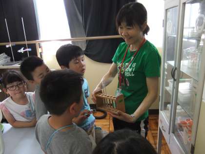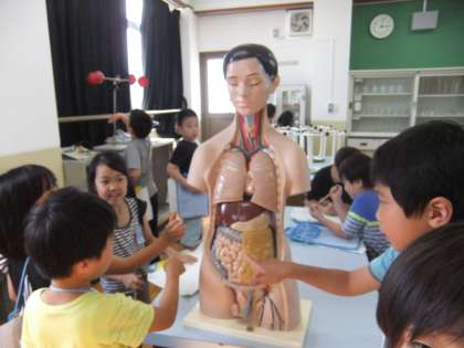 1年生との学校探検で,あまり行ったことがない特別教室を探検に行きました。理科室では,毛利先生が,特別に理科室にある模型などを見せてくださいました。子どもたちは熱心に調べてメモにまとめていました。
