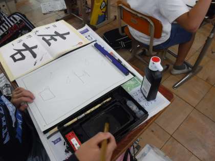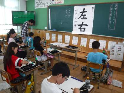 4年生の書写の学習では筆順と字形に気を付けて,「左右」という字を練習しています。静かに集中して取り組んでいます。