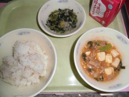 本格的に暑くなってきましたが,給食のとうふの四川風は,少し辛く,しょうがも効いているので,体の疲れを吹き飛ばしてくれます。給食を食べた後は,みんな楽しそうに運動場などで遊んでいました。