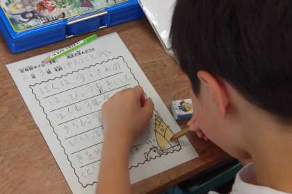 教室に帰った後,一人ひとりが感想のカードを書きました。7月はいよいよ2年生の発表です。