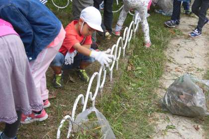 みんなががんばって抜くので,花壇の草は,どんどんなくなって,土が見えてきました。「やったあ,土が見えた」「軍手がどろどろや」「草を抜いたら,気持ちがいいな」など,おしゃべりしながら,最後まで頑張りました。
