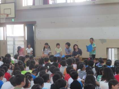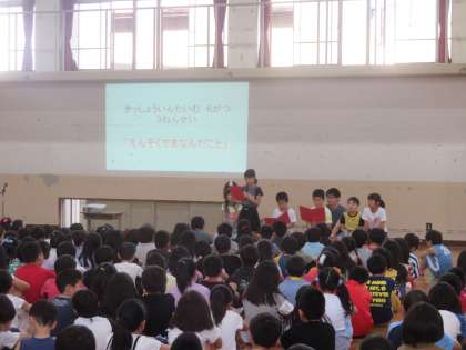 今年度初めての吉祥院タイムを行いました。3年生が「遠足で学んだこと」を発表しました。3年生は,将軍塚に行って,京都のまちを満喫した話や友達と過ごした楽しい思い出の発表でした。