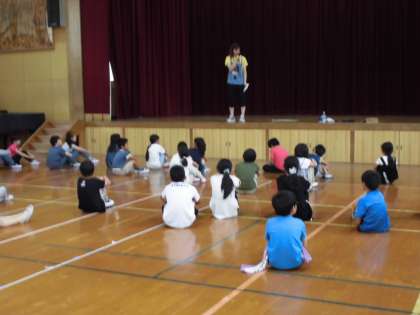 活動が終わり,6年生は同じグループの1年生を,5年生は2年生を教室まで送って行きました。その後で3年生は自分たちで教室に戻り,体育館に残った4年生。