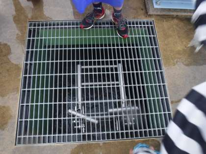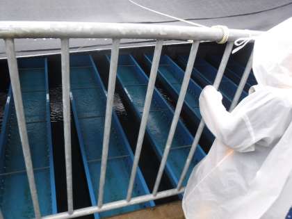 薬を混ぜている所や,汚れを沈殿させている所を見学している様子です。間近で見ることができるので,水がきれいになる様子がよく分かりました。
