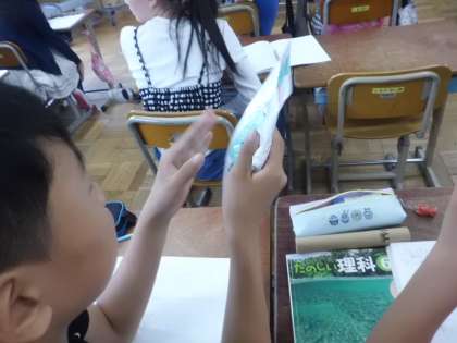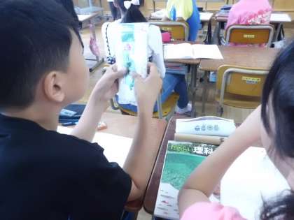 理科「植物の成長と日光との関わり」では,片栗粉を触りました。でんぷんについて,身近に感じることができました。