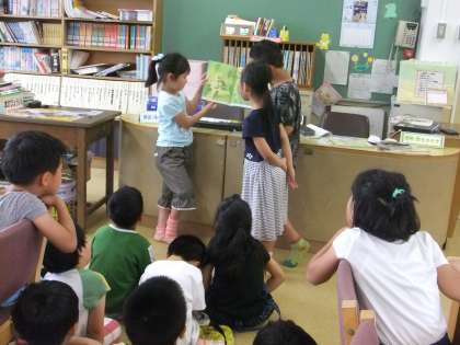 本が大好きな本係が図書の時間に絵本の読み聞かせをしてくれました。ゆっくりページをめくりながらクラスに聞こえる声で本を読んでいました。みんなも静かに聞くことができました。