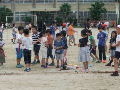 中間休みにみんなあそびをしました。しっぽとり遊びです。2つのしっぽが取られないように体をうまくひねりながら逃げていました。
