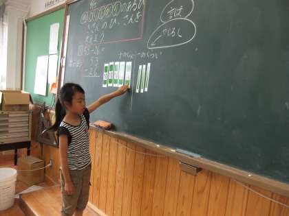 算数科では,2年生は筆算の学習に取り組みます。引き算のひっ算はどうやったらいいのだろう?いつも使っている数え棒を使って答えを出してみました。引けない時は10の束からバラ10に変身させれば引けることがわかりました。