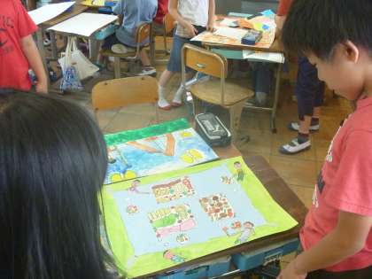 図画工作の時間の「わすれられないあの時」という学習で,心に残っている場面の絵を描きました。作品が完成したので,鑑賞会をしました。「友達の思い出の場面は,どんな時だろう。」「こんな工夫をして表しているんだ。」と友達と交流ができました。