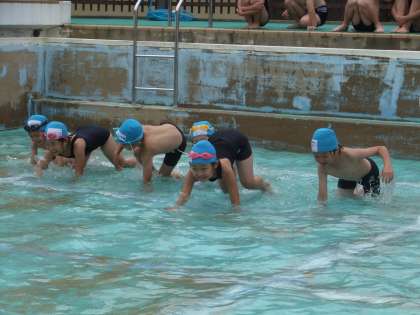 低学年はこの日低水位だったので,顔がつかることはなくみんな安心して四つ足で歩くことができました。クマやワニになって,のっしのっし元気よく活動できました。