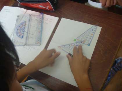 垂直と平行の線のかき方を学習しました。三角定規をどのように使えば,垂直や平行な線がかけるのかを考え,マスターしていくことができました。