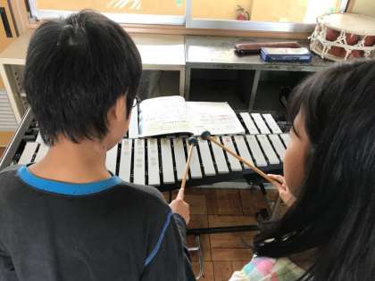 相手の音を聞きながら演奏することに苦戦していますが,頑張っています。
