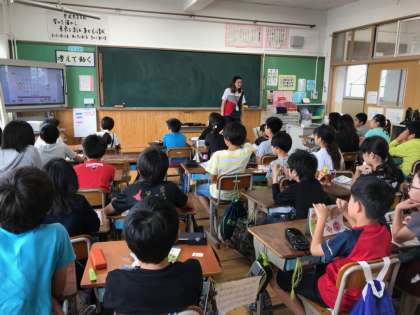 ALTのモンタナ先生と一緒に外国語の学習を行いました。