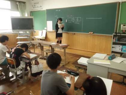 算数科「分数÷分数」では,分数を使った割合の問題に挑戦しました。どのように立式すればよいのか,関係図をかくことでたくさんの子が理解することができました。