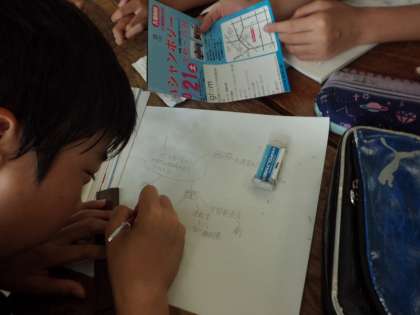 理科「町のよさを伝えるパンフレットを作ろう」では,グループで,ブレーンストーミングをして,パンフレットの構想を立てました。誰にどんな目的でパンフレットを作成するのかを確認できました。