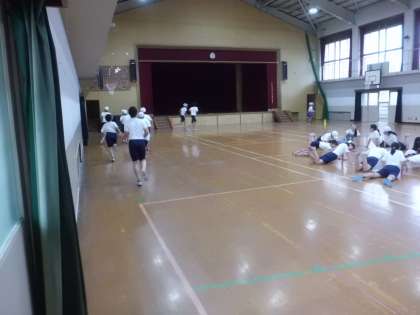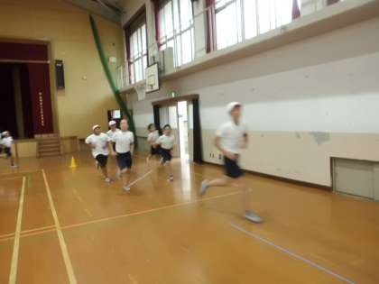 6月29日(金),朝のチャレンジランニングは雨天のため体育館で。限られた場所でも一生懸命に走る子どもたちでした。