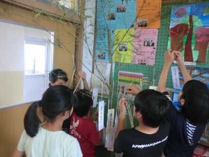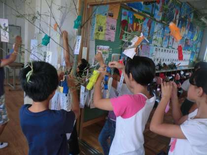 笹を飾っていただきます。短冊にお願い事を書いたり,