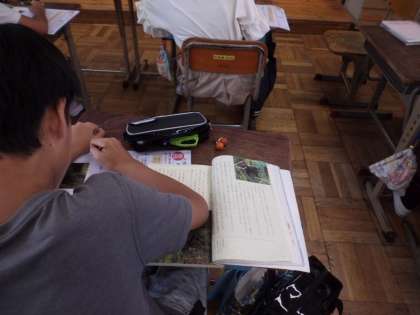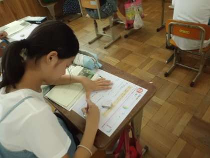 国語科で学習した「森へ」のテストに挑戦しました。教科書をよく読んで,問題に答えていく子どもたちでした。