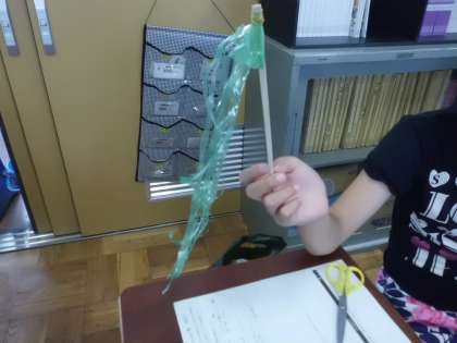 家庭科「夏をすずしくさわやかに」では,風の通り方により涼しさの感じ方が違うことを確かめました。グループに1つのふき流しを作り,窓の開け方を変えて,風の通り方や感じ方を比べることで,効果的な窓の開け方を知ることができました。