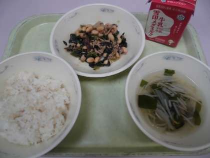 わかめスープに含まれる,わかめには,「ぬめり」の所に栄養素がたくさん含まれている事を伝えると,味わいながら食べていました。