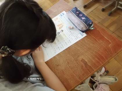 理科「体のつくりとはたらき」のテストに挑戦しました。最後まで見直しをして,間違いがないかを確かめる姿勢が身についてきています。