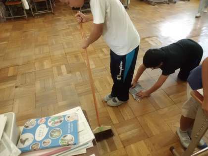 暑い中,掃除時間も頑張る子どもたち。教室もきれいに保たれています。