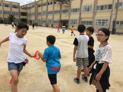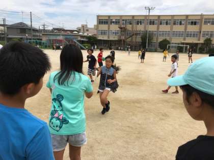 中間休みに遊び係の提案で,リレー遊びを行いました。