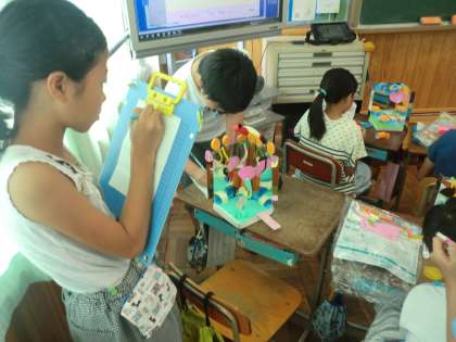 作品が完成した児童から,友だちの作品を