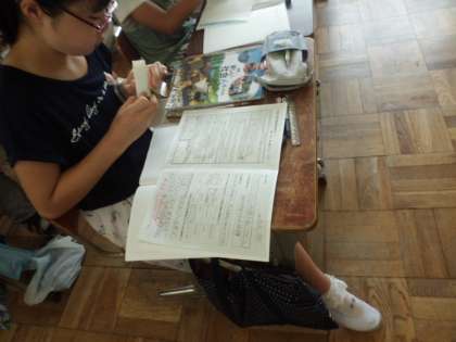 にこにこノートににこにこの日で学習したプリントをはったり,にこにこ力をチェックしたりと,7月までの成長をふり返った子どもたち。多くの子が成長を実感していました。