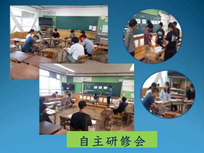 若手教職員を中心に,自主研修会で熱心に学び合っています。日々の教材研究の工夫や,授業準備の様子,先輩の先生からの話,実際に板書し模擬授業をして…。学んでほしいことは,数限りなくあります。頑張れ!!