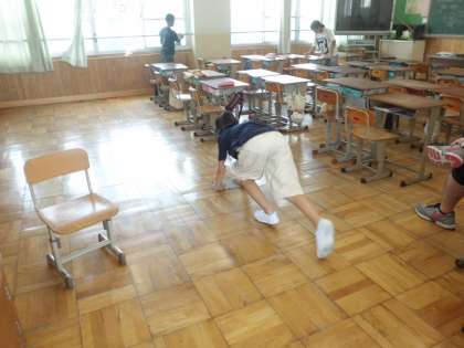 夏休み明け初日の掃除。たまった汚れを丁寧に落としていく子どもたちの姿が立派でした。