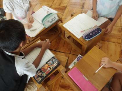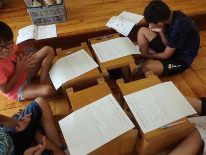 音楽科「いろいろな音のひびきを味わおう」では,リズムアンサンブルづくりに挑戦。リズム譜をグループで作り,楽器を選んで練習開始。楽しく演奏する姿が印象的でした。