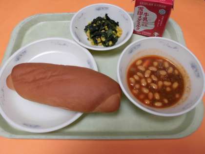 ほうれん草のソテーは,ほうれん草とコーンが入っていました。みんな,しっかり噛んで食べているので,コーンの甘さだけでなく,ほうれん草の甘さにも気付けていました。