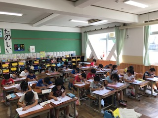 台風が過ぎ,5日はみんな元気に登校できました。朝にカタカナの学習をしました。とても静かに集中して学習することができました。鉛筆の音だけがコツコツと鳴り響いていました。