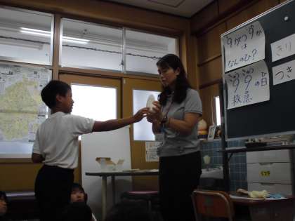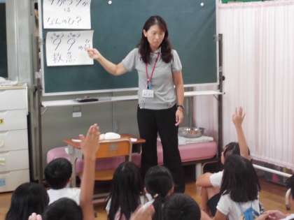 「鼻血が出たときにどこを押さえるか」は,鼻の模型を実際につまんで意見を発表しました。毎年教えてもらっているのに,忘れてしまっている子もいたので良い機会になりました。