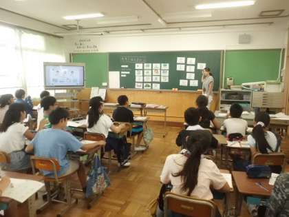 外国語「My summer vacation」では,夏休みに行ったところに加え,その時の気持ちを英語で表現し,交流し合いました。新しい表現がたくさん出てきていますが,がんばって覚えようとする姿勢は立派でした。
