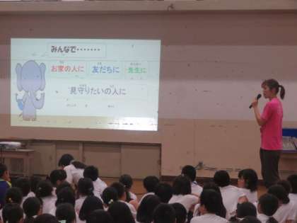 今月の生活目標は,「みんなでげんきにあいさつするぞう」です.