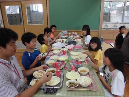 みんなランチルームでの食事をとても楽しみにしていて,五感を働かせながら味わいつつ,友達との会話も弾ませていました。