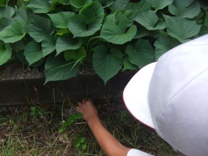 生活科の学習で,学校内にいる小さな生き物探しをしました。草原に行くと,小さなチョウやトンボが飛んでいました。草の下にバッタ発見!生まれて間もない赤ちゃんバッタもいました。