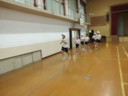 この日の朝チャレも雨天のため体育館。体幹トレーニングで自分を厳しく追い込む子も見られました。