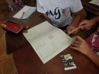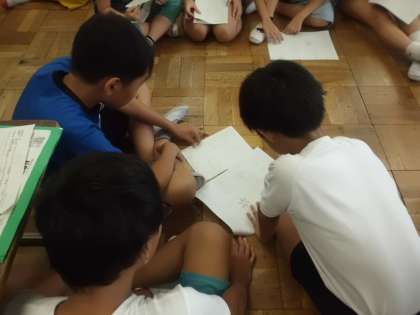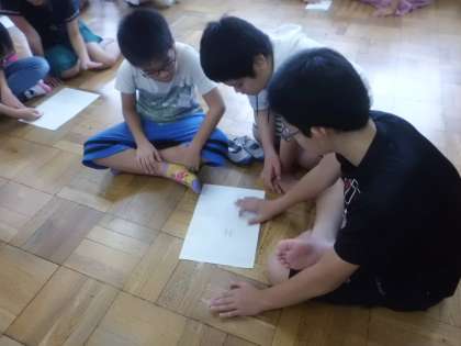 雨天のため,運動場での組体操の練習ができず,教室で音楽を聞きながらカウントを取る練習をしました。ペアやグループで確かめ合ったことで,より正確な演技が期待できそうです。