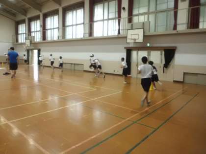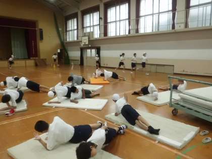 朝のチャレンジランニングは今日も雨天のため体育館で。ここで培った力を運動場で発揮してほしいですね。