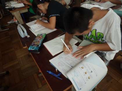 算数科「図形の拡大と縮小」では,四角形の拡大図の描き方を考え,実際に描いていきました。合同な図形の描き方や三角形の拡大図の描き方から,描き方を考えることができた子どもたち。しっかりと積み上がっています。