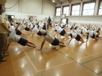 組体操の練習も佳境に。音楽に合わせて,テンポよく演技することができるようになってきました。