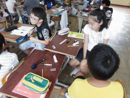 4年生の外国語では今,文房具の言い方とそれを持っているか尋ねる言い方について学習しています。