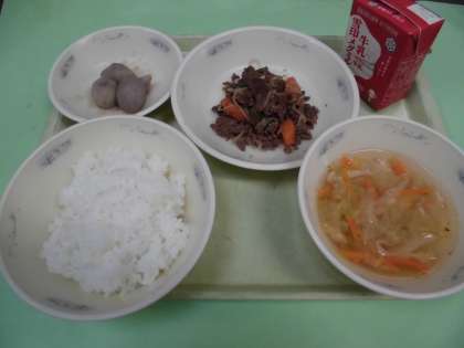 牛肉のしぐれ煮は,砂糖と醤油で作った甘辛い調味液で煮て作りました。甘辛い味でご飯と良く合いました。いつもより,ご飯が,早くなくなっていました。