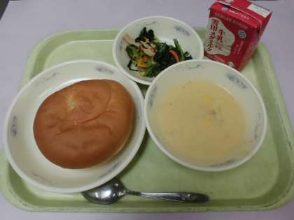 コーンのクリームシチューは,具材がたくさん入っていました。たまねぎやコーンの甘さが,でていて美味しかったです。子どもは,「チーズとバターが入っているから,コクがあっておいしい」・「甘くておいしい」という声を聞かせてくれました。
