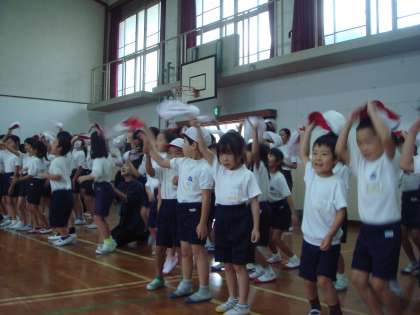 初めての応援合戦でしたが,お兄さんお姉さんの様子の盛り上がりに負けず,