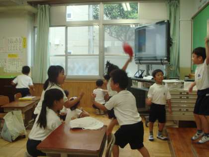 教室で 一生懸命,応援練習をする子どもたちでした。