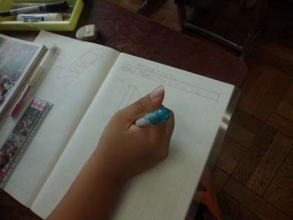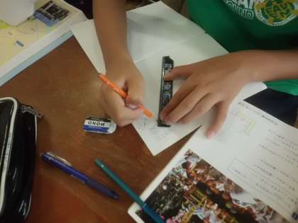 算数科「図形の拡大と縮小」では,拡大図や縮図の意味や性質,作図の仕方を理解しているか,定着をはかる問題に挑戦。今までのノートを見返して取り組んでいく子どもたち。さすがです。